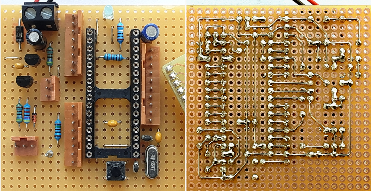 Because it is complicated to etch PCBs without appropriate tools, Veroboard compatible PCB layouts are presented here. Because such a layout is quite coarse, also etching is possible with simple equipment. Appropriate TIF files are available for download.